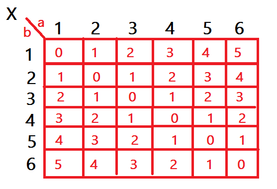 elemento xm,n= |am-bn| <----- Valor absoluto