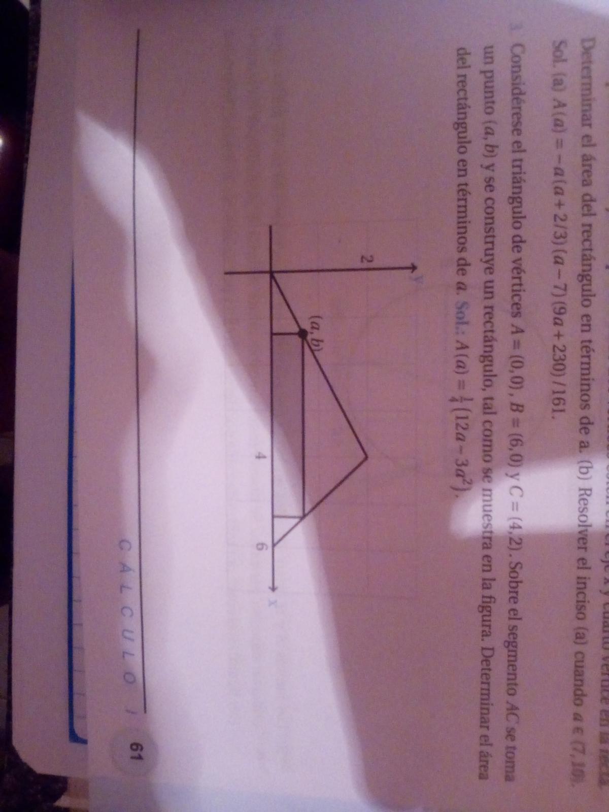 Luego, tienes para el área del rectángulo: