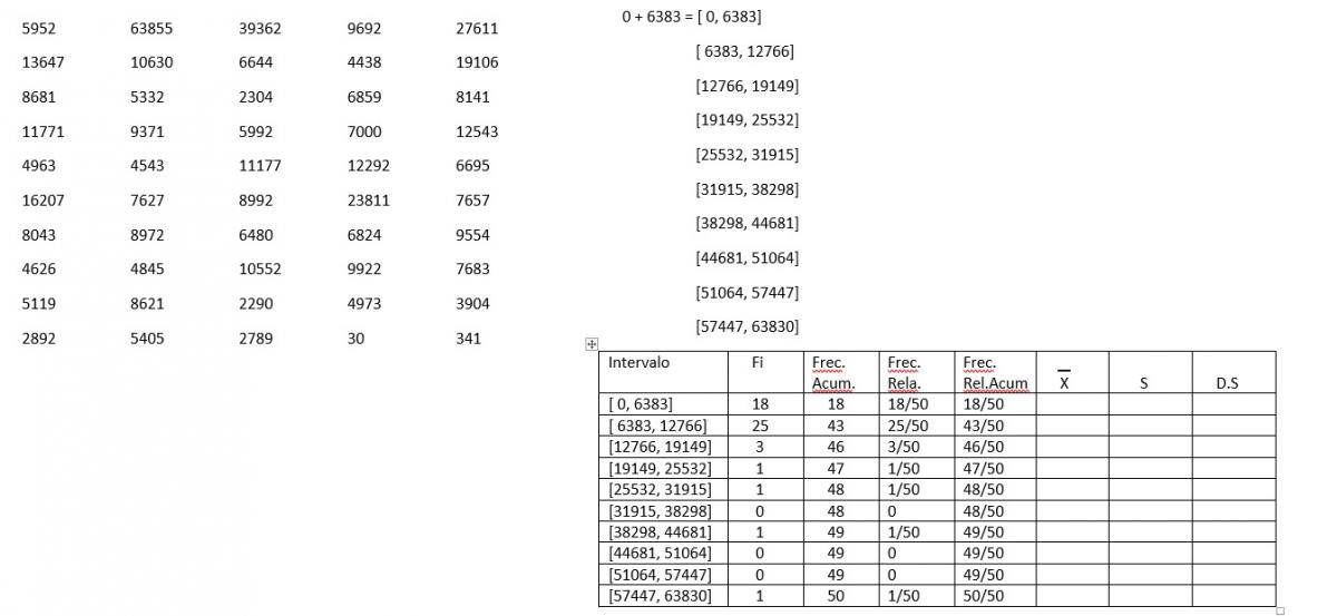 frecuencia de aparicion, relativa, acumulada, relativa acumulada, promedio, varianza, desviacion estandar...