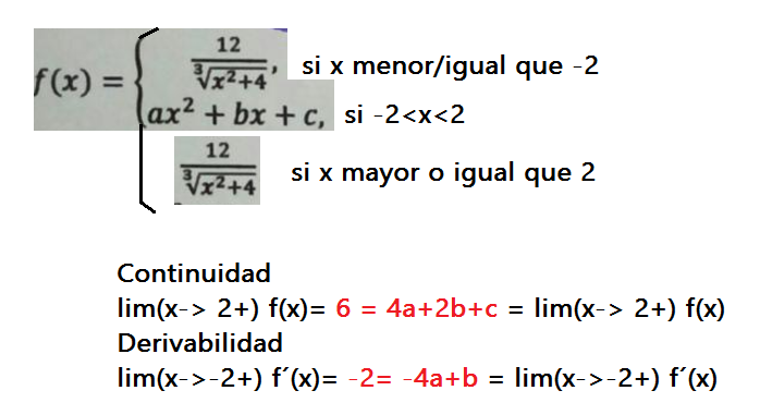 como debe cumplirse que la función derivada debe estar definida en x = -2, planteas la igualdad de las derivadas laterales y tienes la ecuación: