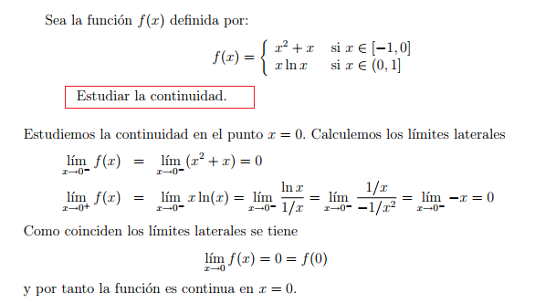 Continuidad en x = 2 (observa que es un punto de corte entre trozos, por lo que empleamos la definición):