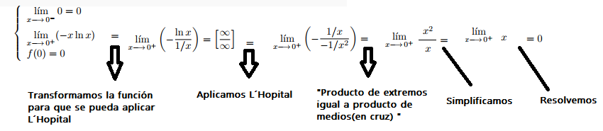 Lím(x→0+) ( lnx / (1/x) ) = aplica la Regla de L'Hôpital = Lím(x→0+) ( (1/x) / (-1/x2) ) =