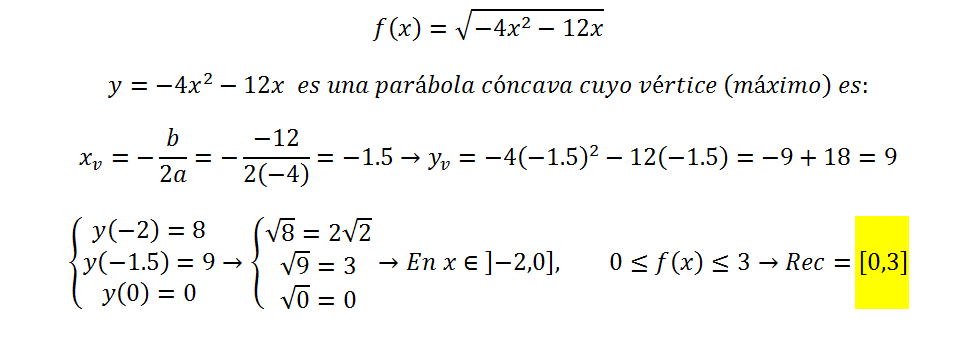 Luego, observa que el vértice principal A1(-3/2,3) tienes su abscisa x = - 3/2 que pertenece al intervalo ]-2,0],