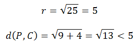 Por lo tanto al ser menor que el radio, P es un punto interior a la circunferencia