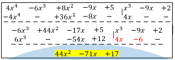 Esta bien el resultado de esta división de polinomios? (4x^4-6x^3+8x^2-9x+5) ÷ (x^3-9x+2) = 2x^2-3x+1 TENGO EXAMEN MAÑANA, AGRADECERÍA MUCHO LA AYUDA.GRACIAS.