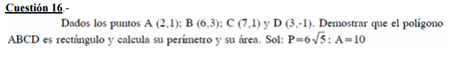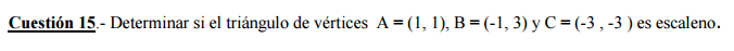 Observa que las longitudes de los lados son iguales a las distancias entre sus vértices, por lo que puedes plantear: