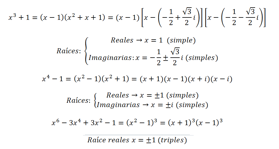 Calcule las raíces de los polinomios. Si hay raíces repetidas, indique su multiplicidad. Escriba además cada polinomio en forma de producto de sus factores lineales.