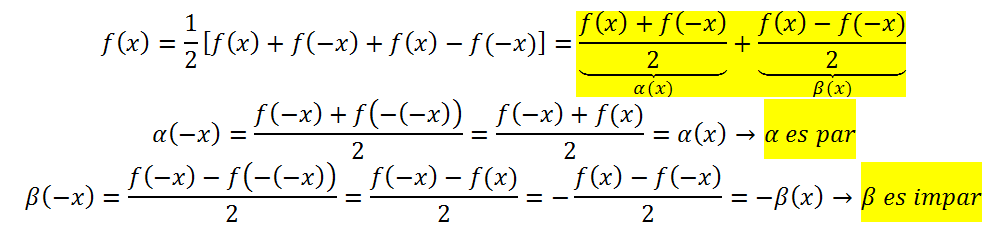 Forme E(x)=(f(x)+f(-x))/2. Demuestre que E(x)=E(-x), por lo que E será