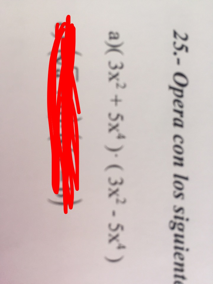 se realiza usando la suma por diferencia, el primer miembro al cuadrado menos el segundo al cuadrado (3x2)2=9x4 y (5x4)2 = 25x6