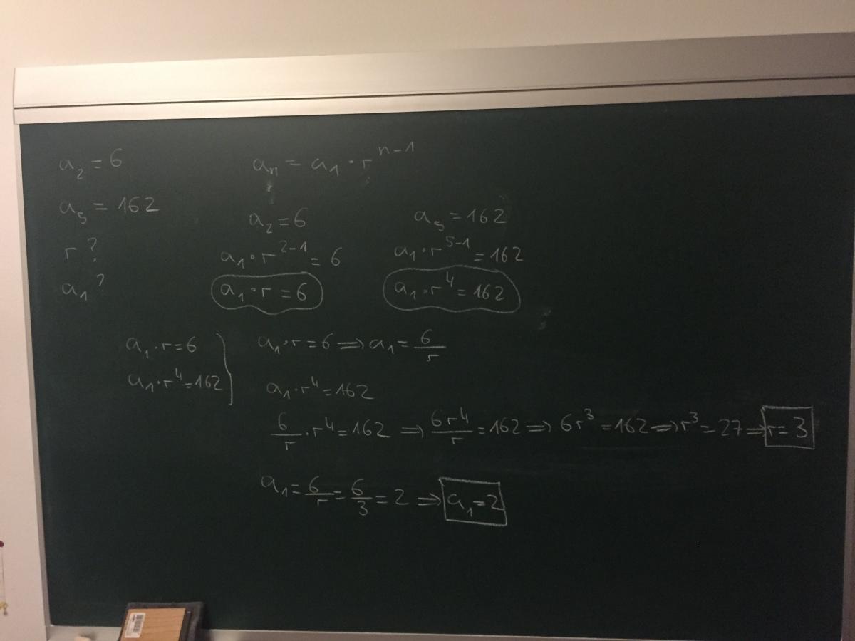 Halla la razón y el primer término de una progresión geométrica en la que el segundo término vale 6 y el quinto 162.