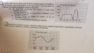 1- Pablo salió de su casa a las 8 de la mañana para il al instituto. En el recreo, tuvo que volver a su casa para ir con su padre al médico. La siguiente gráfico refleja la situación: