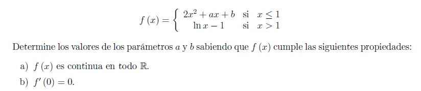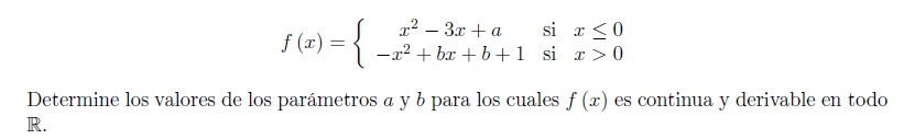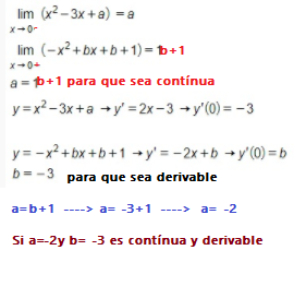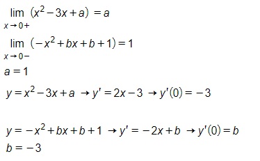 El límite por la derecha en x=0  es  b+1.