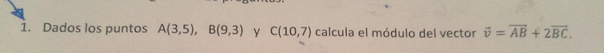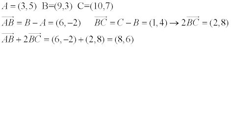 v = AB + 2*BC = sustituyes las expresiones de los vectores en función de las coordenadas de los puntos que los determinan: