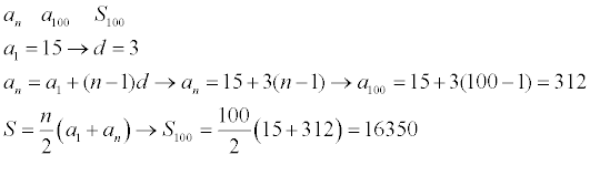 Hola, en una progresión aritmética me piden calcular el término general, hallar el término a100 y también la suma de términos s100. El primer término es 15 y la diferencia 3.