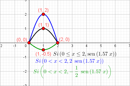 Se refiere a la función con dominio [0,2] y rango [0,1] cuya gráfica se muestra en la siguiente figura: