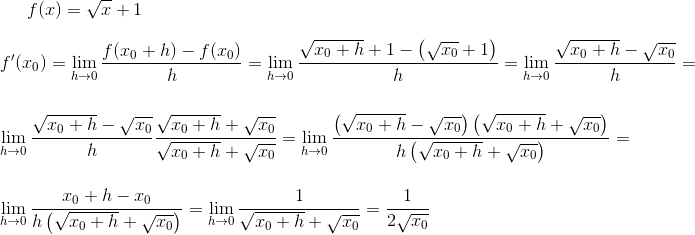 Obtenga, mediante la definición de derivada, la derivada de √x +1