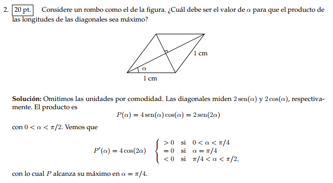 Hola, no encuentro una relación para llegar a que las diagonales de este rombo miden 2sen(α) y 2cos(α).