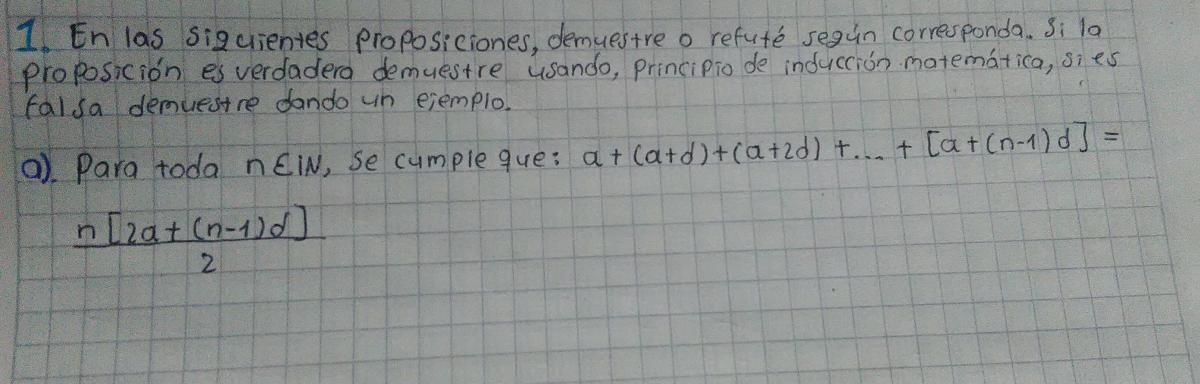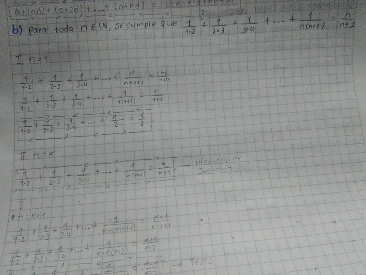a + (a + d) + (a + 2d) + ... + [a + (h - 1)*d = h*[2*a + (h - 1)*d]/2 (Hipótesis Inductiva).