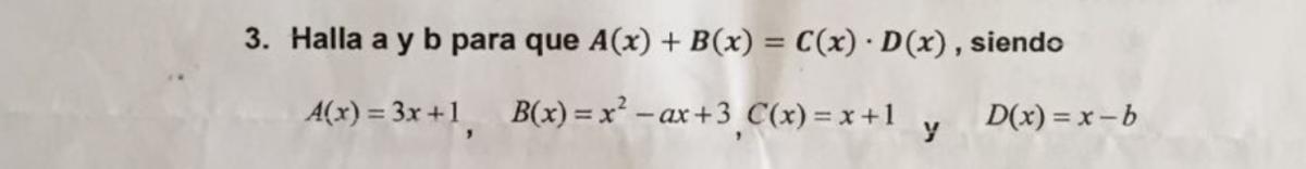 luego, por igualdad entre polinomios, igualas coeficiente a coeficiente y queda el sistema de ecuaciones: