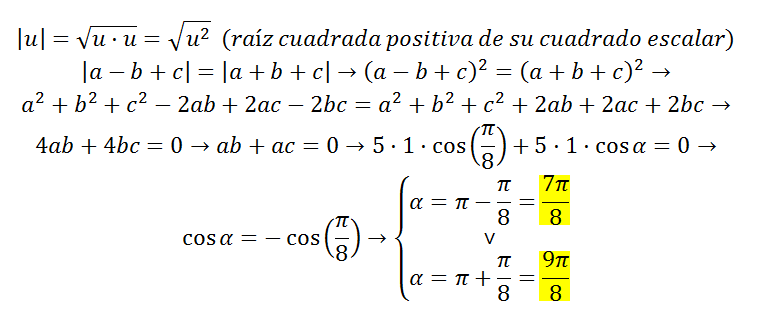 En el apartado a, utilizo los vectores de las dos rectas que forman en angulo B: AB(7,-7) y CB(-1,-3) y aplico la formula Cos α =Ι v.u + v.u Ι. El resultado me da 63,43º. Pero