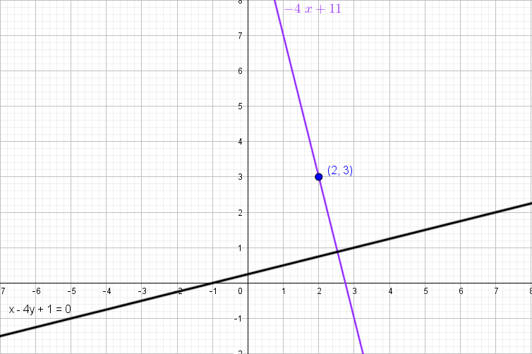 -pasa por (2,3) y es perpendicular a x-4y+1=0