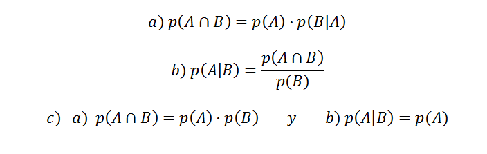 Si A y B son 2 eventos dependientes,escribir las expresiones para: