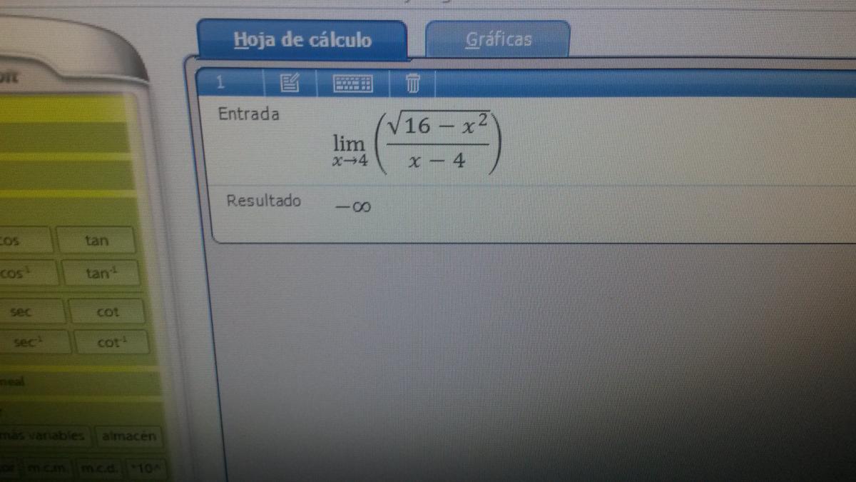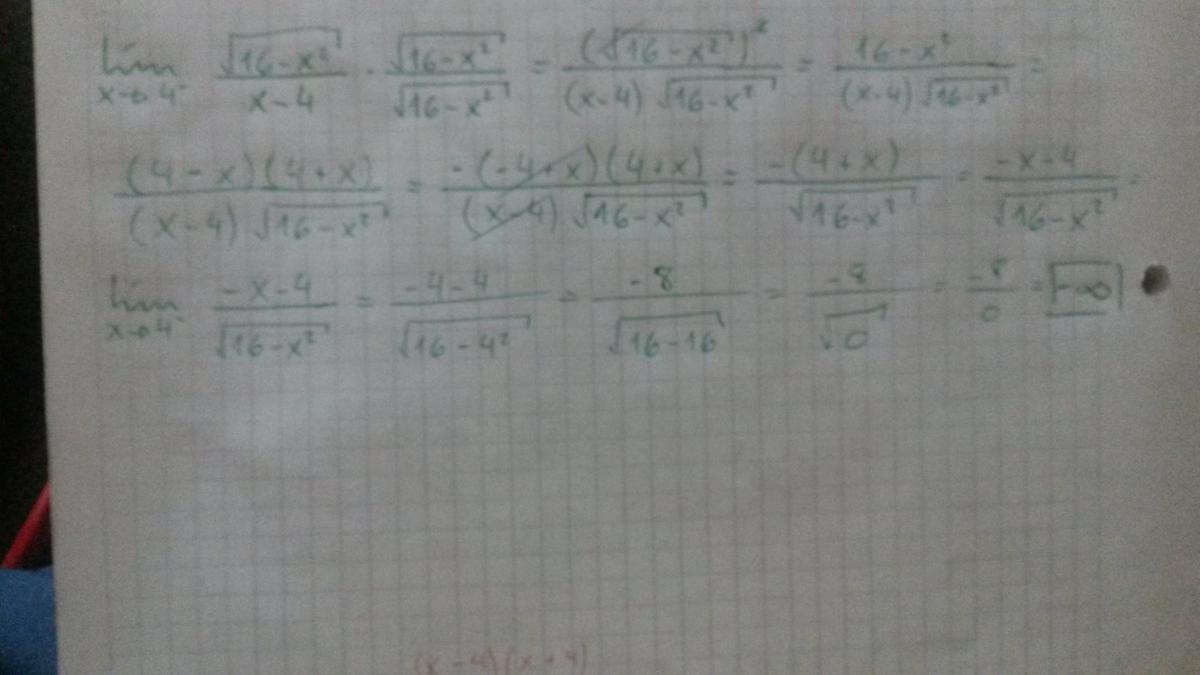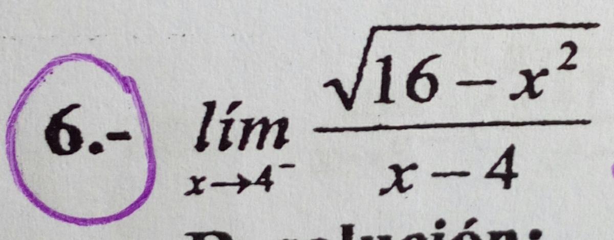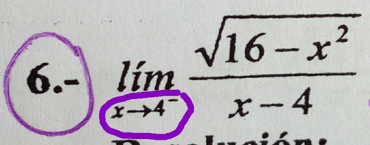 Lím(x→4-) √(16 - x2) / (x - 4) = (observa que es indeterminado ya que tanto el numerador como el denominador tienden a 0)
