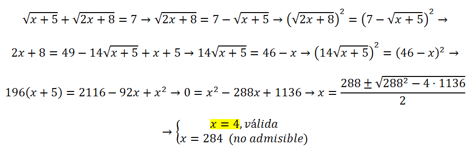 Resolvemos con la fórmula de segundo grado y obtenemos: