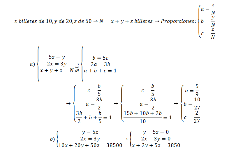 -Plantear un sistema de ecuaciones para determinar la proporción de cada una de las denominaciones de billetes que hay que introducir en el cajero.