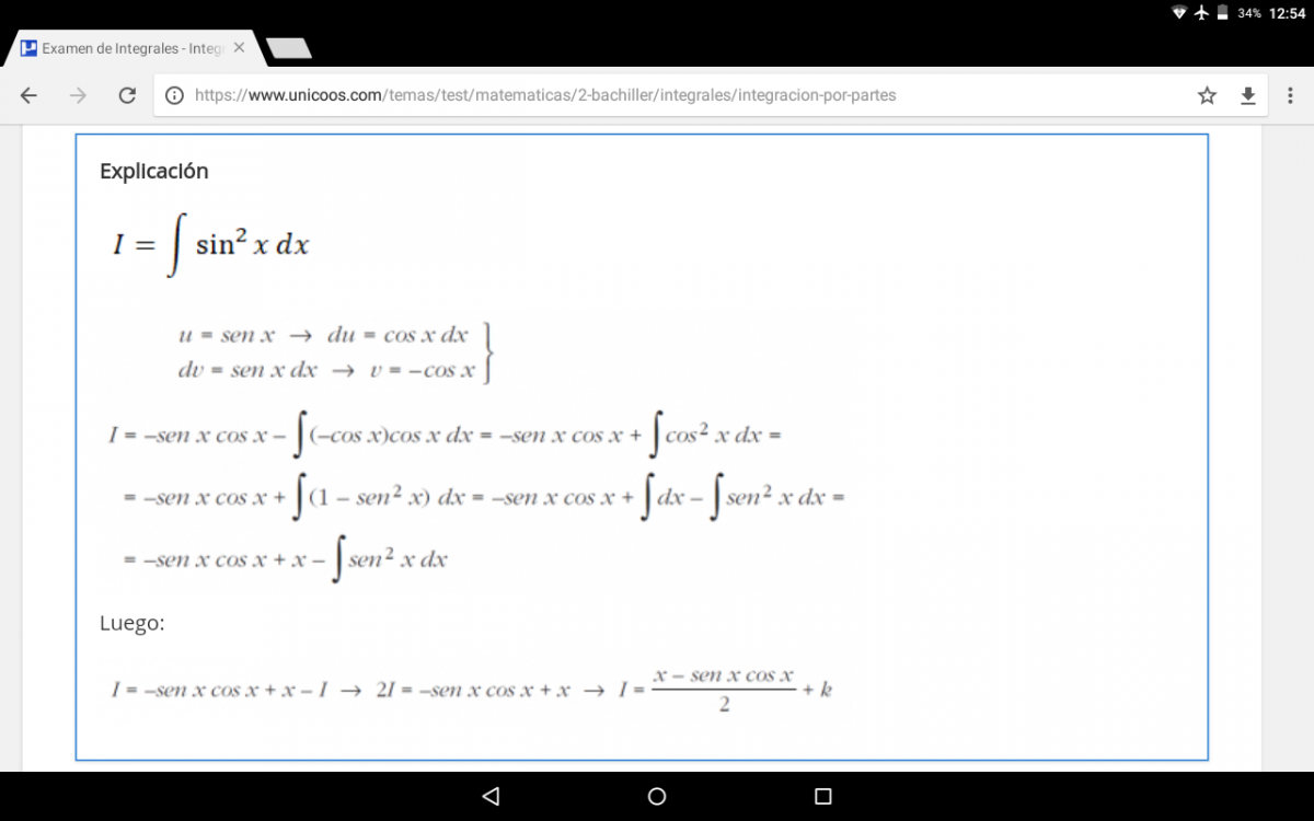 Hola unicoos, igual que llegado el momento se usa la identidad cos2x=1-sen2x, por qué no usa desde el principio que sen2x=1-cos2x? Me explico, ya sé que si lo haces como yo he planteado no da bien, pero con que criterio lo uso a mitad de ejercicio y no desde el principio? Cosa de práctica? Tengo que ir yo dándome cuenta de cómo va a ir evolucionando la integral?