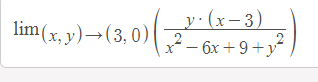 Observa que el argumento del límite puede escribirse: y(x-3) / (x-3)2+y2