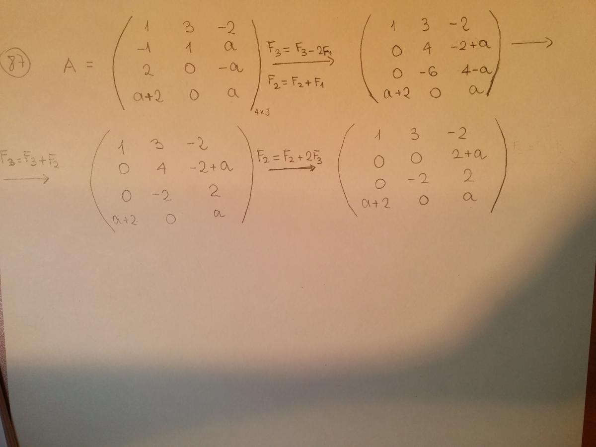 si a ≠ - 2 (observa que tienes también: 2+a ≠ 0), tienes tu última matriz equivalente por filas: