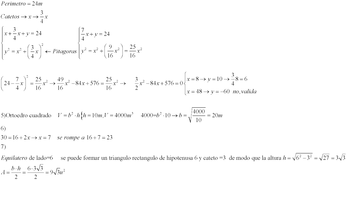 ok. Gracias había planteado bien las ecuaciones, pero me equivoque al resolverlas. El 7 del triángulo rectángulo tiene que dar 15,58 m2. Sigo intentando. en la ecuación del ejercicio 4f yo te puse arriba como me quedaron las ecuaciones porque eran complicadas ¿está bien? porque cuando intento resolverlas no me dan el resultado que figura en el to