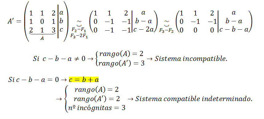 y, por lo tanto, el rango de la matriz no es igual a 3.