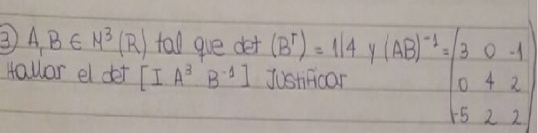 luego tienes la matriz (AB)-1, calculas su determinante (te dejo la tarea) y queda: