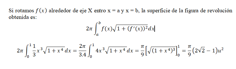 Como se hacen este tipo de ejercicios: Calcular el area de un cuerpo giratorio que se genera cuando giramos la función f(x)= 1/3 x3una vez sobre el eje X , entre x=0 y x=1