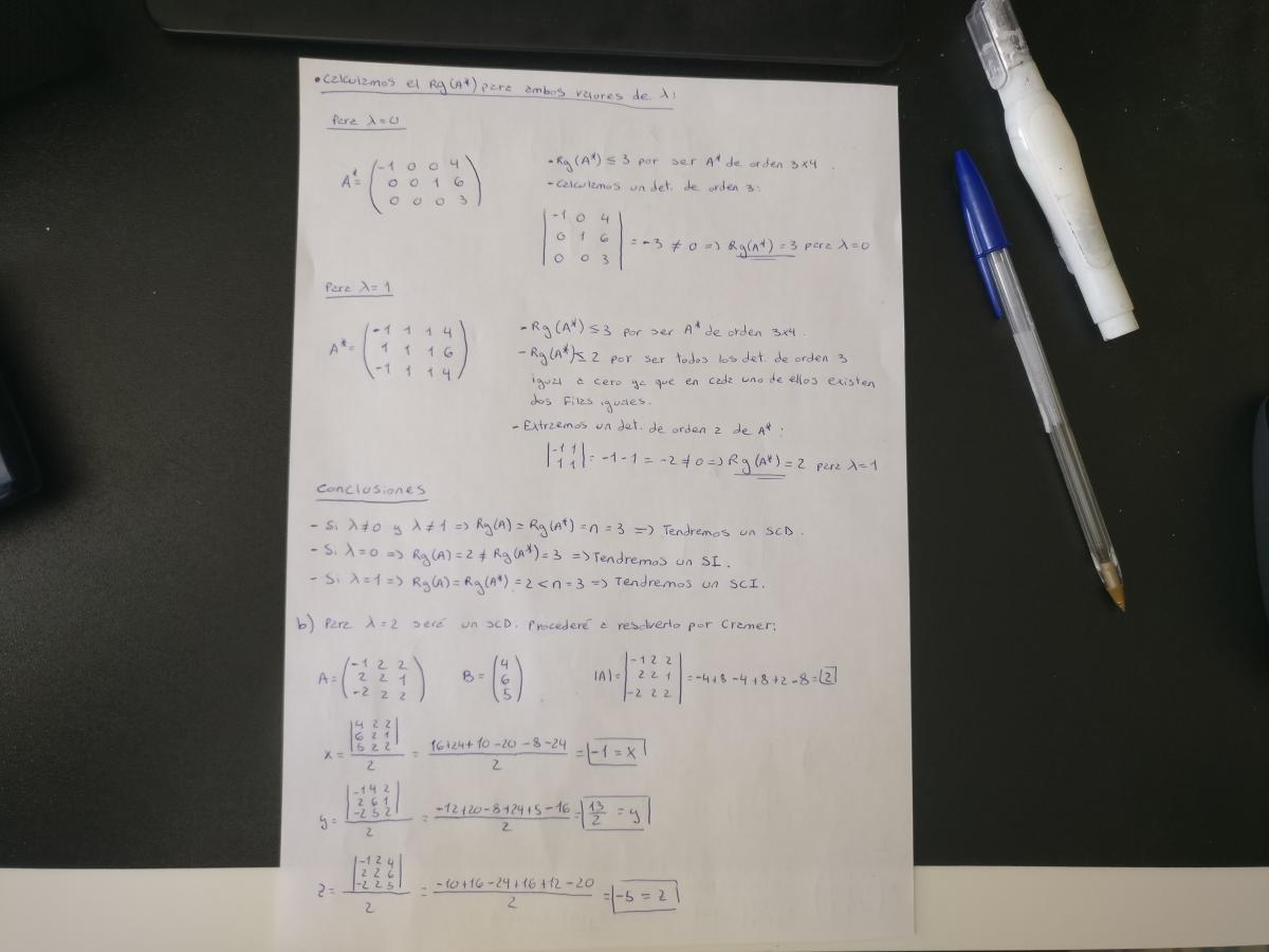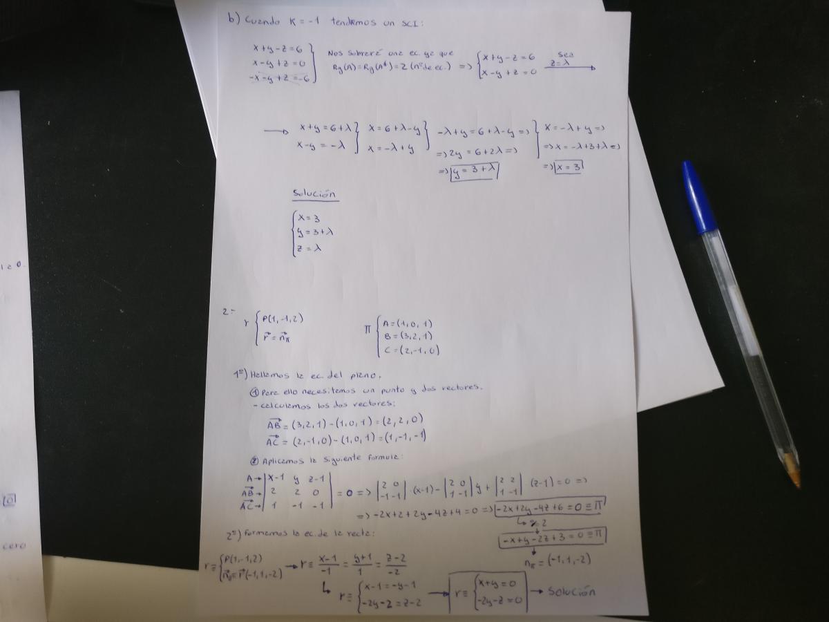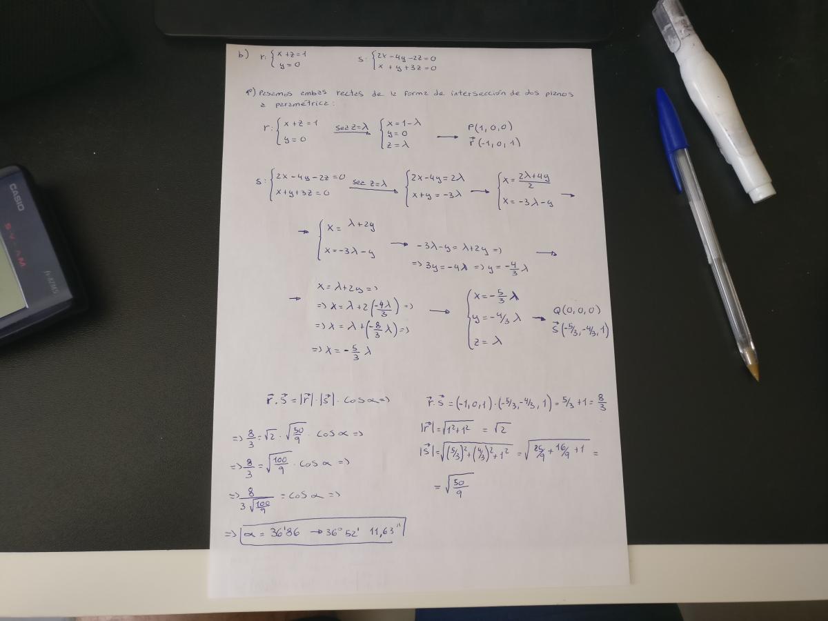 Respecto al apartado a, pienso que la solución de m=1 no es válida, ya que para que sean secantes el rango de la matriz resultante de agrupar el plano pi y los planos que conforman la regla s debe ser 3, y por tanto el determinante debe ser distinto de 0, para lo cual la única solución es que m sea distinto de -4: