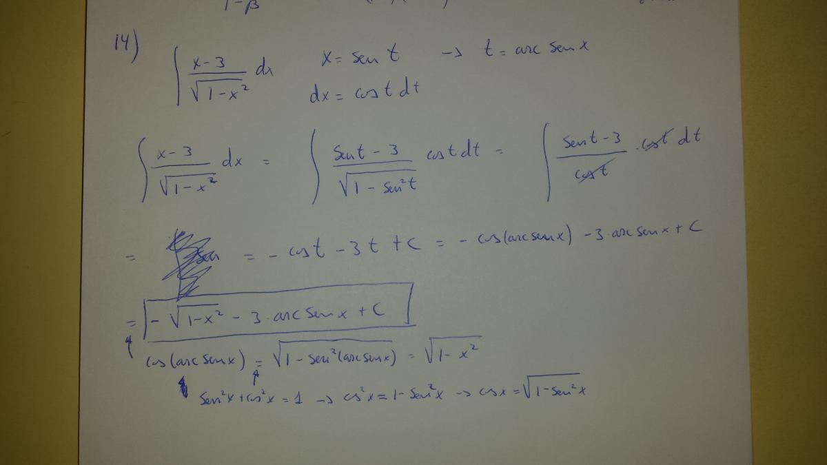 2) extraes el factor constante 3, y observa que queda unbintegral directa, cuya solucion es arcsen(x) + C.