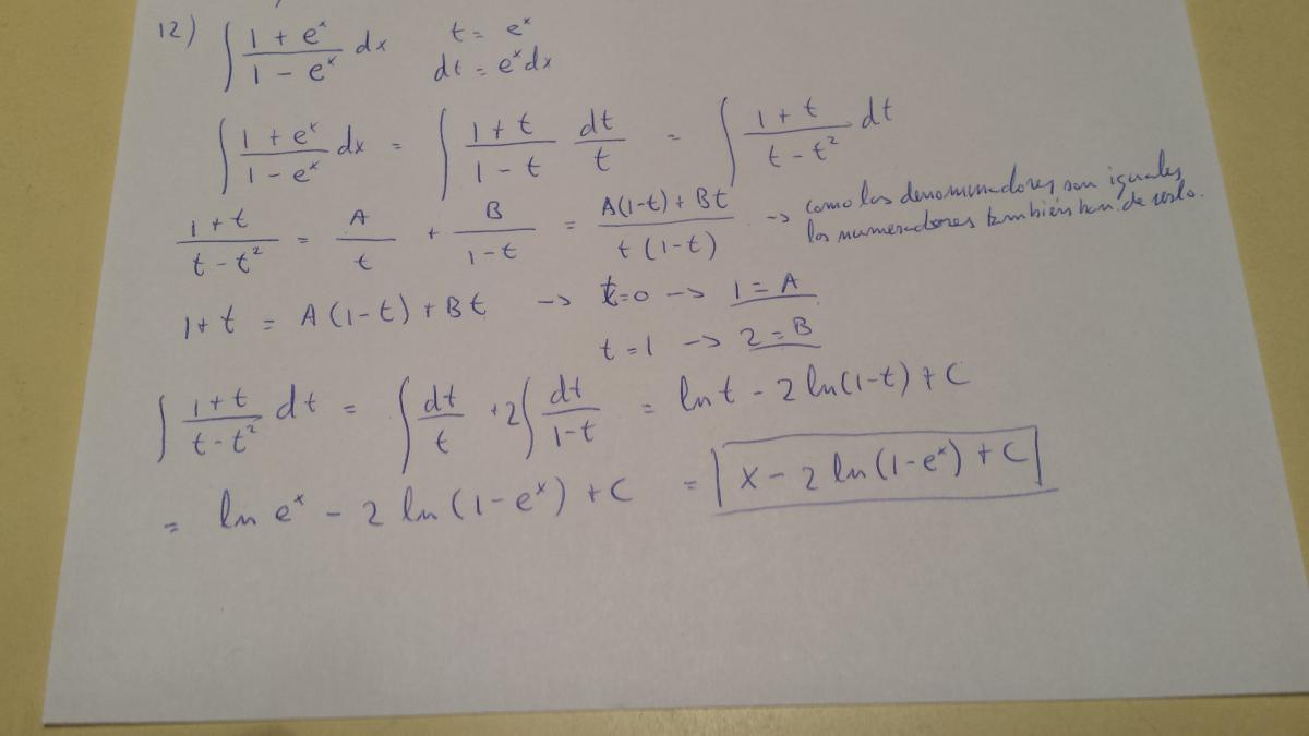 Hola a todos, teneís una web magnífica y me encanta la labor que estais realizando, a ver si me podeis ayudar con la siguiente duda. Al resolver esta integral por sustitución el resultado creo que me sale mal. La solución que dan por buena en Vitutor es: x - 2 ln (e^x -1)+C y a mi me da: x - 2 ln (1 - e^x) + C