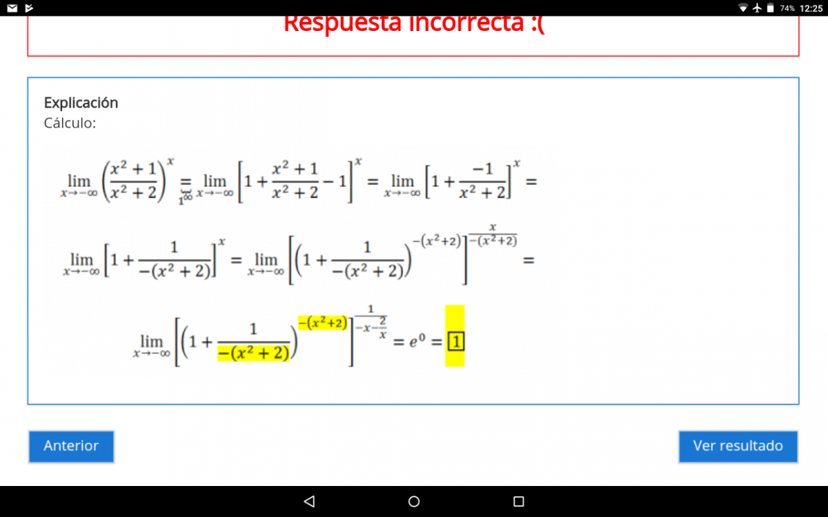 = Lím(w→+∞) (w2 + 1 )/(w2 + 2) )-w = aplicas la propiedad de las potencias con exponente negativo y queda: