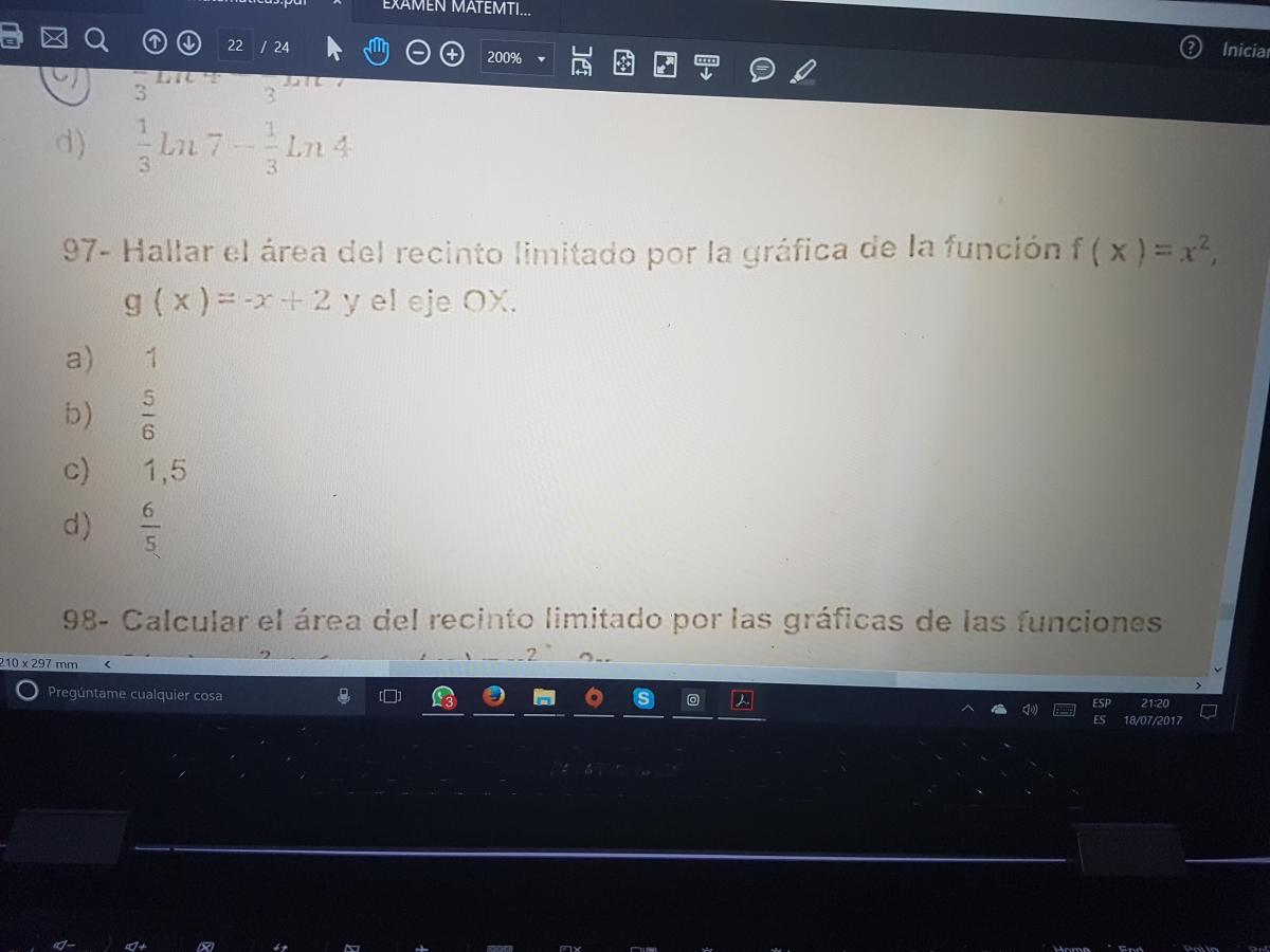 Alguien me puede ayudar a plantear la integral para hallar el área que me piden? Gracias.