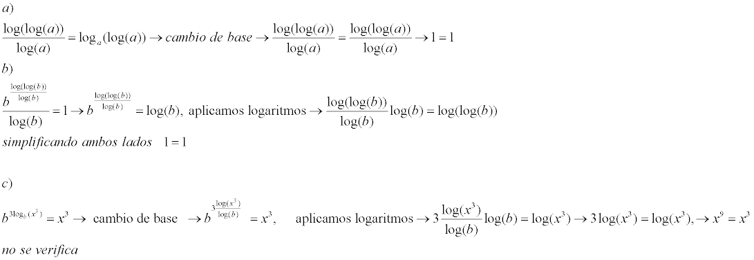 bLog(w)/w / w = 1, tomas logaritmos en base b en ambos miembros y queda: