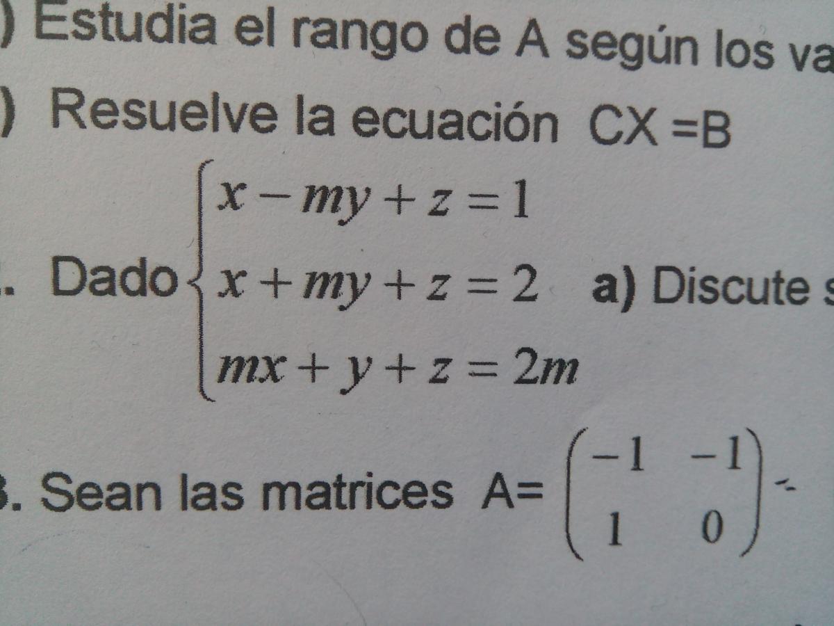 fin de que el sistema sea compatible indeterminado con dos grados de