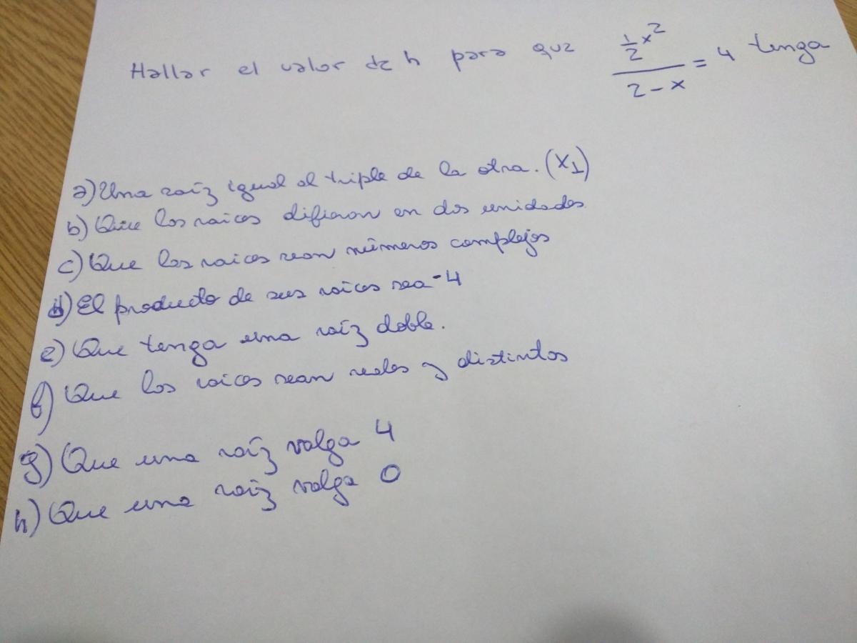 (1/2)*x2 - h - 8 + 4x = 0, multiplicas por 2 en todos los términos de la ecuación, ordenas términos y queda: