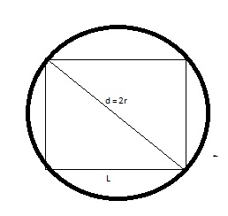 Haz un dibujo de las bases de ambos cuerpos, y verás que la base del prisma (cuadrado) está inscrito a la base del cilindro (circunferencia),