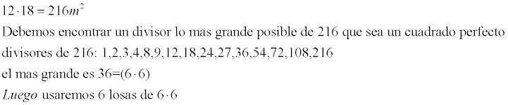 Se quieren poner losas cuadradas a un salón de celebraciones de 18m de largo y 12m de ancho. Si quiero qué las losetas sean del mayor tamaño posible. ¿Cuánto deben medir?