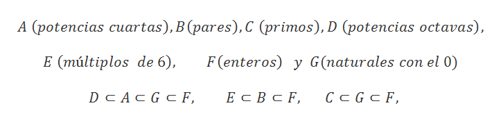 ¿De entre los siguientes conjuntos, cuál es subconjunto de cuál?