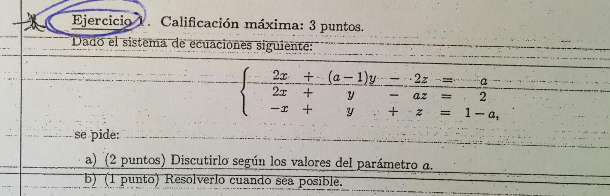 Hola Unicoos, he sacado el determinante, pero y qué pasa con esos valores que hacen que el determinante sea 0? y como puedo averiguar el rango, porque tengo parámetros a, y no se si algunas filas son linealmente dependientes, tendria que hacer ceros con Gauss? y como los hago si tengo parámetros?,