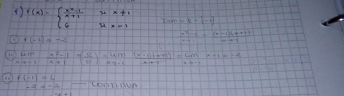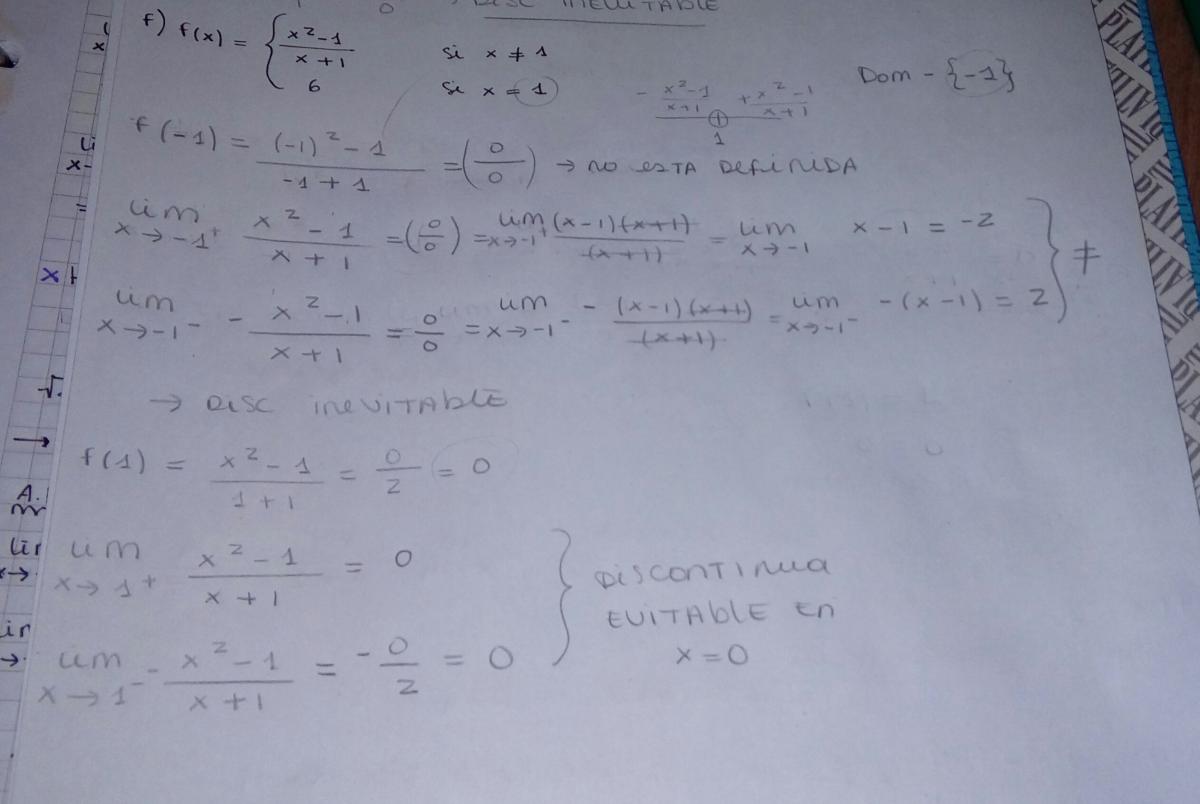 al calcular el límite de f cuando tiende a -1 por la izquierda no hay que cambiar el signo dando el mismo -2 con lo que tb f presenta discontinuidad evitable en x=-1 (ayer cometí un fallo) quedando: