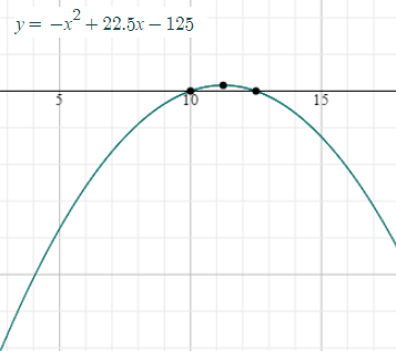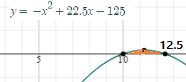 1) x = 10, y = 22,5 - 10 = 12,5, y el área queda: A = 10*12,5 = 125 m2;
